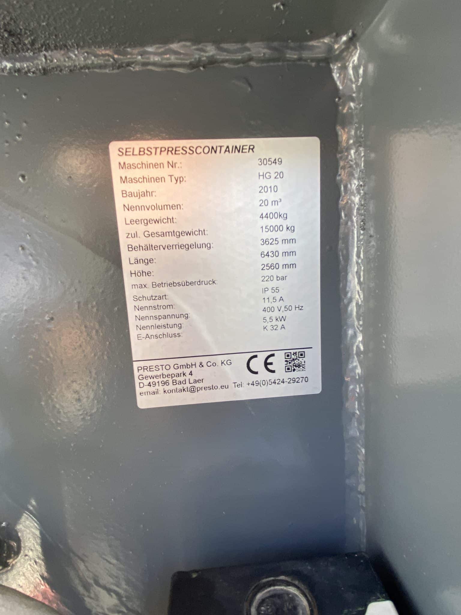 Presscontainer HG 20 Presto BJ 2014 #30549