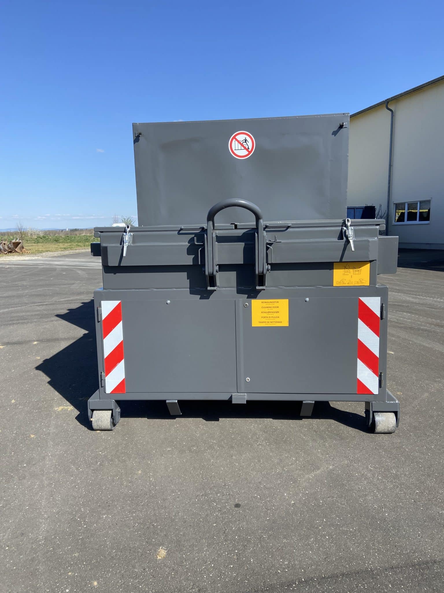 Haken vorne (klappbar) nach DIN 1570mm, Haken hinten nach DIN als Zug-/Rangierhaken, vier Laufrollen, Deckel zweigeteilt, Entleerungstüre seitlich angeschlagen und abgedichtet, Leuchtanzeige mit ¾ Vollmeldung, CEE-Stecker 32A, Pendelrückhalter, Fernbedienung steckbar, ohne Telematik
